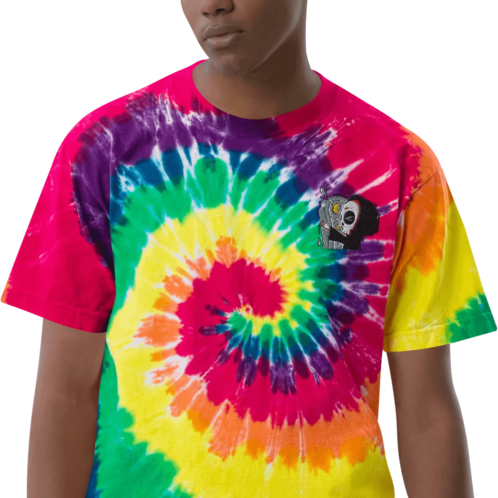 Oversized tie-dye tee crafted from 100% heavyweight US-grown cotton for a comfortable and durable streetwear style with a touch of Todd portraying how to successfully perform the "999Tech."